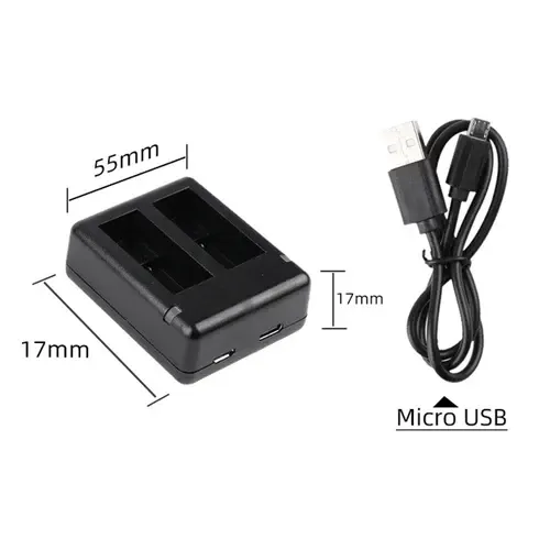 Зарядний пристрій Dual Battery Charger призначений для акумуляторів камер GoPro 9, 10. Має можливість одночасного заряджання відразу 2 акумуляторів GoPro Hero 9, 10 через порт USB від комп'ютера, ноутбука, від домашньої мережі (потрібна вилка-перехідник) або від USB-порту в автомобілі також від переносного POWERBANK. Світлодіодний індикатор, розташований на пристрої, показує стан заряджання (червоний — заряджається/зелений — батарея заряджена). Зарядний має два входи — Micro USB і TYPE-C.
